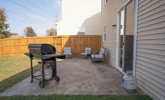 * Outdoor Patio: Grill, seating area, and private fenced yard for relaxing evenings