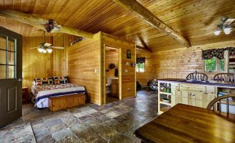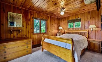 The separate guest cabin sleeps 7 adults comfortably with 4 beds and a full bath. It offers additional privacy and space for your group.