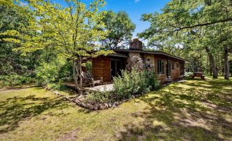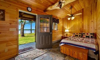 The spacious main cabin sleeps up to 7, features a cozy wood-burning fireplace, screened-in porch overlooking the lake, and upper deck with beautiful views of the water. Relax with free WiFi, flat screen TVs, a sound system and smart home features. The fully equipped kitchen has everything you need.