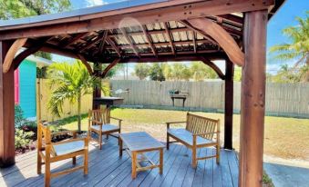 You will love Flamingo Cottage! This super cute and cozy 2 bedroom, 1 bath is located in the quaint area of Rio in Jensen Beach. Flamingo themed home has new furnishings in a funky beach style. Beautiful vaulted wood ceilings are a wonderful original feature. New gazebo is a great place to spend the evening or early morning coffee break. Perfectly situated just minutes from downtown Jensen Beach, historic downtown Stuart, restaurants, shopping, waterfront, boat launch and the BEACH!!