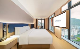 房間一整個愛住了!全景落地窗視野無敵,而且還是智能可控的,輕輕一按就能享受窗外的美景,太愜意了。智能馬桶也很贊,提升了居住的舒適度。55寸的智能大屏不僅夠大,還能投屏,晚上窩在沙發上看電影超爽。沒想到酒店還配備了徠芬吹風機,吹頭髮又快又好,細節處盡顯用心。酒店的配套設施也十分完善。有健身房和洗衣房,健身愛好者可以隨時鍛鍊身體,洗衣房也為出行提供了很大的便利。17樓的江景餐廳更是一大亮點,一邊品嚐着美味的早餐,一邊欣賞着江景,心情格外舒暢。尤其是早餐的建德豆腐包和手工現包餛飩,味道正宗,讓人回味無窮。總之,這家酒店無論是硬件設施還是服務都無可挑剔,下次來還會選擇這裏,也會推薦給身邊的朋友!