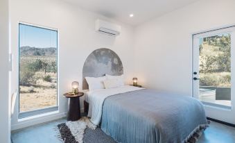 Located just minutes away from the vibrant Joshua Tree Village, you'll have easy access to local amenities and attractions. Embark on a scenic drive and reach Joshua Tree National Park in just six minutes, where you can explore the iconic rock formations and immerse yourself in the beauty of the desert landscape. Take a short 20-minute drive to Pappy & Harriet's, a renowned music venue and restaurant, or visit the historic Pioneertown, known for its old western charm. For a memorable dining experience, head to La Copine, a popular restaurant just 20 minutes away. And if you're seeking a unique spiritual journey, the famous Integratron is only a 25-minute drive from your doorstep.