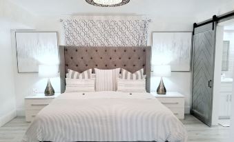 All of the surfaces in our POSHPADZ Properties are cleaned with Anti-virus cleaners which kill 99.9% of viruses for 24 hours. Our "Villa KOKOMO" is a luxury 2 bed 2.5 bath condo located in Jupiter Beach. 5 minute walk to the sand on Jupiter Beach. The unit is located on the Ground floor and offers a large private balcony with lovely views of the community lake. Note: Both bedrooms are accessed by one flight of stairs. The community offers 2 heated pools, tennis courts, and an on site restaurant which overlooks one of the community pools and the community lake. This property has been renovated & designed by our POSHPADZ Luxury Interiors team in 2019. Luxurious living room with white leather sofa and 75" SMART flat screen TV. Both bedrooms offer luxurious King size beds and 65" SMART flat screen TV's. All appliances in the fully equipped kitchen are brand new and you can't beat the prime location! High speed WIFI. There is a large screened patio just off the living room area which overlook the community lake. The unit has a brand new LG washing machine and dryer in the laundry room. No old & frumpy furniture here, not in a POSHPADZ Luxury Property.
