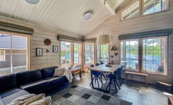 On the beach, a shallow sandy beach, a pier, a boat and a spacious barbecue hut for shared use. The glazed terrace offers a good view of the slopes of Ukkohalla and Lake Syväjärvi.
