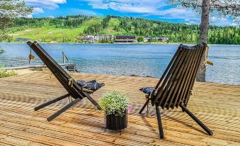 Pets prohibited, beautiful view over the slopes and Lake Syväjärvi.