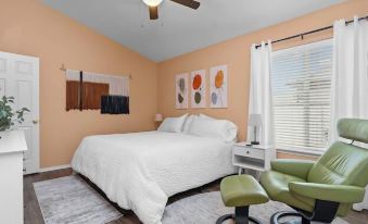 Unwind in the comfortable living area, use the desk if duty calls and stay connected with WiFi and smart TVs. Outside, enjoy a fenced yard with a small dining table. A single-car garage is included.