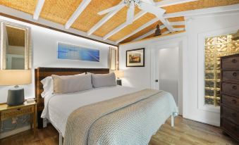 This tropical cottage is designed for relaxation with bamboo accents and serene colors. The cottage has beautifully unique and original Cuban tile floors throughout, a king-sized bed, one spa-like bath with over-sized walk-in shower, washer and dryer in the unit. There is also a private courtyard with deck, opening from the living room and bedroom with outdoor furniture perfect for working on your tan and outdoor enjoyment. The common area of the compound has a shared pool, sunning and garden area.