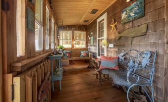 The deck overlooking the pond is a great place to get a tan mid-day and cookout in the evening. Enjoy the front porch for coffee & breakfast in the morning & is a great place to sit & chat in the evenings. We provide a grill and clothes line for our guest's convenience.