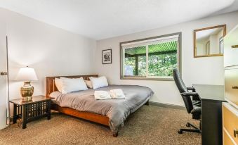 MAIN FLOOR QUEEN: queen-sized bed + adjacent full bathroom.