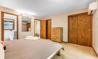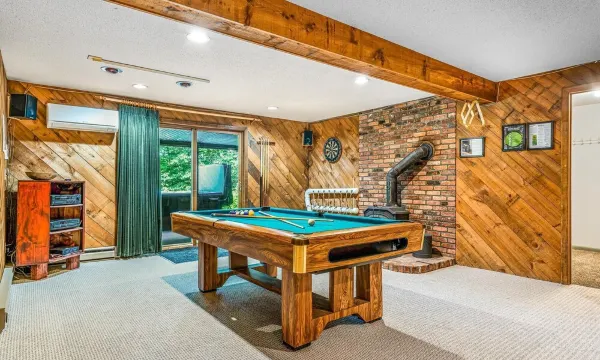 Walk downstairs to an après-ski dream come true!! The room is anchored by our beautiful billiards table, with plenty of space to move around for the perfect shot. We also have a poker table (and even leave out a set of poker chips). In the winter, warm up under our heat lights and feel free to use our ski boot dryer, too. And of course, cycle through the hot tub (just outside) before hitting the sauna and a shower. And of course, the basement is wired with a Bluetooth-compatible sound system!!