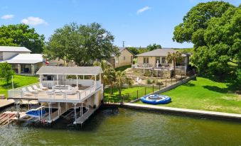 Incredible open-water lot on the Colorado Arm of Lake LBJ! 50 feet of east-facing waterfront with deep water, double jet ski ramp and double boat dock with beautiful partially covered roof top deck and beautiful trees by the boat dock providing lots of shade from the west sun to keep you cool in the hot summer. Beautiful single story 3 bedroom/2 bath Austin stone home with an open floor plan with large windows bringing you to the lake as soon as you walk in the front door.