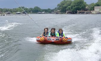 We truly enjoyed the time we spent at this property. I think the best part was the dock deck with the jump off spot, swings and comfy furniture! The kids enjoyed the swim pad and paddle boards. There was not a water trampoline like shown in the pictures and the pedal boat had no rudder to steer it so we couldn’t use it, but the kids didn’t mind because they spent the entire time jumping off the dock!