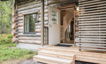 Stylish apartment in a semi-detached house, built in 2019. The house is located within a stone’s throw from Levi center. The apartment is located at the end of the yard right next to calming forest.