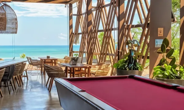 Bellissimo resort di design con le camere sparse per un giardino in discesa che finisce sulla spiaggia sempre molto ventosa, affidato a un personale che non parla inglese ma comunica con whatsapp e Google translator, non ci ha capito quando abbiamo chiesto di prenderci i bagagli per la partenza, ce li siamo dovuti portare in salita da soli, non capiva quando chiedevamo informazioni, quando ordinavamo del cibo, insomma manca un responsabile che coordini. La colazione è buona ma c’è poco personale e il sevizio é scarso.