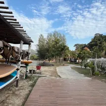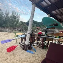 The resort is away from the main road so it is really quiet, the only noise is from the fishing boats that head out to the deeper waters of the bay and then back to the fishermen’s village nearby. There’s a free shuttle that you can book beforehand (even 5 min before) to White Sand beach, it goes three times a day, and to Klong Son Market (every hour), they can also pick you up from the nearest ferry for free if you arrive there on your own.