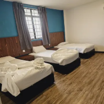 Hotel good for families. One room have 3 bed and the other room is double bed.