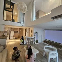 Homestay tọa lạc tại trung tâm thành phố, với không khí sôi động tràn ngập khắp nơi. Chỉ mất vài phút đi bộ xuống cầu thang là đến phố ăn vặt, nơi có đủ loại đặc sản Vân Nam, chẳng hạn như bún gạo vượt cầu và chả cá nướng, với hương vị cực kỳ chính thống và giá cả phải chăng. Homestay cũng rất gần ga tàu điện ngầm. Chỉ cần vài điểm dừng là đến các điểm tham quan nổi tiếng như Công viên Cuihu và Sở thú Côn Minh, rất thuận tiện cho việc di chuyển. Tôi đã đặt một phòng gác xép thông tầng và vô cùng ngạc nhiên n*** khi bước vào cửa. Không gian ở đây nhẹ nhàng và thư giãn. Với ánh đèn ấm áp, bầu không khí được tối ưu hóa, mang đến cảm giác như được trở về tổ ấm của chính mình. Cả tầng trên và tầng dưới đều có màn hình lớn. Khi mệt mỏi vì chơi đùa vào ban đêm, bạn có thể cuộn tròn trên ghế sofa mềm mại và xem phim cùng gia đình. Thật thoải mái. Bộ chăn ga gối đệm mềm mại và êm ái, bạn có thể ngủ đến tận bình minh. Phòng cũng chu đáo chuẩn bị sẵn khăn trải bồn cầu dùng một lần, được thiết kế chi tiết và cực kỳ an toàn khi sử dụng.