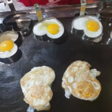 Vào buổi sáng, khách sạn còn chuẩn bị bữa sáng thịnh soạn cho du khách. Thật sự rất tuyệt vời (dù bạn ở miền Nam hay miền Bắc, bạn đều có thể thưởng thức bữa sáng ngon miệng). Món trứng chiên mà tôi thích nhất cũng được phục vụ;