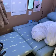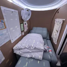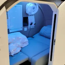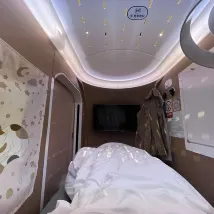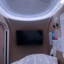 Nhìn chung, trải nghiệm này kém. Căn nhà rất ngột ngạt. Tôi không thể bỏ qua vấn đề tiếng ồn và an toàn rồi ngủ với cửa mở vì hệ điều hành không được thiết lập để cho phép cửa cabin mở trong thời gian dài. Ngoài ra, giường sofa bằng da có độ thoáng khí kém và gây khó chịu khi ngủ. Sau khi ra khỏi nhà ga, sẽ có nhân viên quảng cáo dịch vụ cho thuê giường tại khu vực nghỉ ngơi qua đêm cho hành khách. Những người bạn ở lại qua đêm có thể đến đó và tìm hiểu.