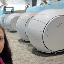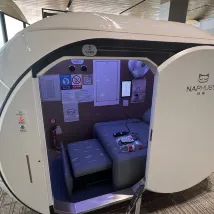 Giá khá cao. Nếu bạn chỉ cần ở lại dưới 3 giờ, hãy đến thẳng đó vì họ cung cấp dịch vụ cho thuê theo khung 30 phút. Nếu bạn ở lại 6 giờ, hãy đặt phòng cho cả đêm. Không có biển báo rõ ràng, nhưng bạn có thể lên tầng 4 bằng thang cuốn ở đầu Isle H (Sảnh khởi hành, nằm ở tầng 3). Chúng ở phía đất liền, trước khi đến khu vực an ninh. Không có phòng tắm vòi sen, vì vậy đừng hy vọng nhiều. Tuy nhiên, nhà vệ sinh rất nhiều. Bạn cần phải đi bộ ra khỏi khoang để đến nhà vệ sinh nên không tiện lắm nếu bạn có bàng quang nhỏ. Và những gì mọi người ở đây nói không thể đúng hơn - bên trong khoang rất ngột ngạt. Chỉ có một chiếc quạt nhỏ. Đối với một giấc ngủ ngắn trong vài giờ khi quá cảnh, thì nó sẽ ổn. Nhưng đừng mong đợi sự thoải mái theo kiểu khách sạn.