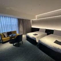 Lối vào tầng một của khách sạn rất tối (không nổi bật bằng khách sạn bên cạnh). Nó nằm trên con phố đông đúc nhất ở Kyoto, cách Daimaru một khoảng cách ngắn). Sảnh đợi nằm ở tầng ba sau khi đi thang máy. Có mùi tinh dầu bách rất thơm. Thiết kế không gian của cảnh quan, dù là cảnh quan sân vườn, dòng nước chảy hay không gian rộng lớn, đều mang đến cho không gian một ý niệm nghệ thuật rất mới mẻ. Có ghế sofa ở khu vực sảnh để mọi người nghỉ ngơi trong khi chờ làm thủ tục nhận phòng. Đồ dùng tắm rửa chung, bao gồm bàn chải đánh răng, lược, khăn tắm, kem dưỡng da, v.v., được cung cấp ở phía trước thang máy để hành khách lựa chọn. Thẻ phòng có số tầng giới hạn nên rất đơn giản. Có nhiều lựa chọn khi đặt phòng, bao gồm cả việc bạn cần bữa sáng hay trà chiều miễn phí. Vì chúng tôi đã mua gói trà chiều khi đặt phòng nên chúng tôi có thể đến quầy bar từ 2 giờ chiều đến 5 giờ chiều và từ 8 giờ tối để ăn bánh quy, uống rượu và uống đồ uống. Có nhiều sự lựa chọn. Tôi thấy khách nước ngoài mua một ít đồ ăn và mang đến quầy bar để kết hợp với rượu vang cho bữa tối. Đây là nơi tuyệt vời để thư giãn. Phòng tắm trong phòng được phân chia thành khu vực ướt và khô. Bạn có thể tắm trước rồi mới ngâm mình trong bồn tắm. Bạn nên tắm mỗi ngày khi đến Nhật Bản. Thật sự rất thoải mái.