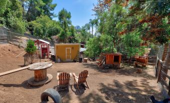 We have chickens and two small goats that reside on the property. During the day, they free range in a fully fenced coral. At night, the chickens return to their coop and the goats have their own shelter. The chickens will lay 3-5 fresh eggs in the nesting box between the coop and shed. You are welcomed to collect eggs from the nesting box outside the coop. The animals are very social and enjoy interacting but please do not let them out of the coral. Food and water is automated but someone will be coming by to check on animals every 2-3 days.