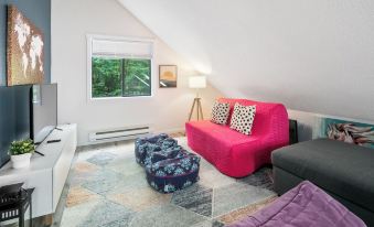 Savor this unrivaled 4-season vacation community with infinite amenities while staying at this 3BR/2BA eclectic escape in Masthope for your next Poconos vacay. Inviting artwork and colors throughout the home give it a fun vibe.