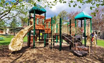 Private lake beach, paddleboats, paddleboards, kayaks & canoes available to borrow, 25% off Ski Big Bear & snow tubing, XC skiing trails, hiking, 2 playgrounds, 2 outdoor pools (depth 1’-6’), kiddie pool w/splash pad, beach deck w/ dining tables & charcoal grills, mini golf, horse stables/riding, game room, tennis courts, basketball courts, handball, bocce ball, shuffleboard, cornhole, horseshoes, 2 playgrounds, fitness center w/ classes, massage therapist @ fitness center for fee.