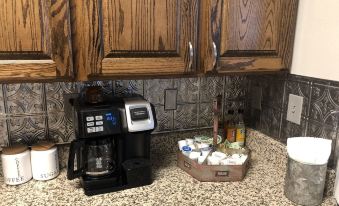 The kitchen is equipped with everything you need to prepare meals or to prep for tailgating. We will make your mornings great with our coffe bar! Enjoy your coffee while sitting on the porch which overlooks the grassy courtyard.