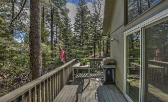 The cabin is adorable and in a quiet spot! It has a deck with furniture and a bbq. It slept all of us comfortably and had plenty of towels and with a washer and dryer made it more helpful with the kids. I am a very picky person as far as cleanliness But I felt that maybe the spider webs inside and furniture could have been dusted better. But I do realize that the cabin is in the mountains and it may be an inevitable occurrence. It didn’t affect the trip and we had a fabulous time.