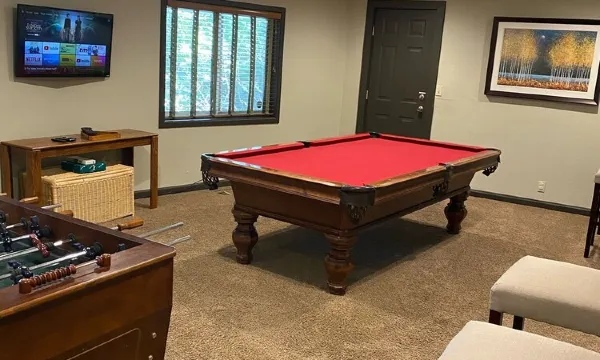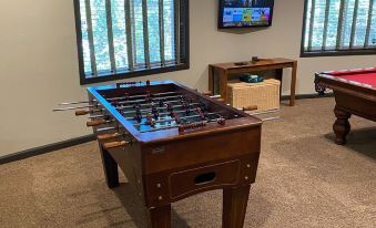 Nestled in the heart of Lake Arrowhead Village, our luxury cabin is the perfect balance between serenity in the woods and convenient access to all that downtown Lake Arrowhead has to offer. Relax in the mountain vibes of our gorgeous A-frame cabin with high vaulted ceilings, modern kitchen and bathrooms, and stunning floor to ceiling views of the forest. There are two bedrooms on the main level, one with a king size bed and the other with XL twin bunk beds, both share a full bathroom. On the second level, there is a private master suite with king bed, full bathroom, and loft area perfect for enjoying a morning cup of coffee. In the bottom of the house, there is a bonus living area set up as a game room complete with a pool table and board games. Our cabin is situated at the end of a private road that connects to plenty of dirt access roads that you can wander off into and take in all the mountain fresh air and whispering pines. So what are you waiting for? Secure our cabin today and book your mountain getaway!About pets:No pets allowed.About checkOut:Check out before 11:00 AM.About children:Children allowed: ages 0-17.All outlets have child protection covers.About customRules:As a precaution to anyone with pet allergies, property owners do have small dogs. Thorough cleanings are performed after each stay..There will be no refunds for inconveniences such as power outages, adverse road and/or weather conditions, acts of god, or pandemics.,Lake Arrowhead is a private lake. Arrowhead Lake Association only allows access to beaches, trails, and docks to homeowners, not vacation rentals..About checkIn:Check in after 4:00 PM.About smoking:Smoking is not permitted.About minBookingAge:Minimum age to rent: 25.About events:No events allowed.