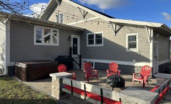 Relax in luxurious wine country. Whether you are looking for a relaxing getaway with the family or friends this completely redone 100 year old Craftsman 4 bedroom, 2.5 bath farmhouse on 19acres of vineyards, blueberries, hayfields, woods, and pond is the place to be. Spend evenings by the fire on the patio or wood burning fireplace inside. Enjoy relaxing walks and great memories with the ones you love! Only minutes from Beaches, Wineries, Breweries, shopping and so much more! Don't miss this rare opportunity. NEW THIS SEASON: 6 person hot tub on back patio and Full spectrum infrared 2 person sauna in mudroom to enjoy during those cold winter nights!About pets:Pets allowed: dogs (limit 2 total).About checkOut:Check out before 11:00 AM.About children:Children allowed: ages 0-17.About customRules:Each guest will receive their personalized entrance code prior to check-in. The smart lock is located on the back door of our home..Please park on the driveway only.