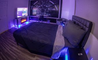 Embark on a galactic getaway as you step into a Star Wars-inspired haven! Our vacation rental offers an extraordinary experience for fans and adventurers alike. You need your space! We have lots of it - Our expansive 6-bedroom retreat welcomes up to 15 guests, ensuring that everyone—family and friends—can enjoy a comfortable and memorable stay together, creating cherished moments that last a lifetime. Unwind in our refreshing pool and spa after a day of exploration, recline under the patio, stargaze from the cozy outdoor hammock or play some games. You can put around the outdoor putting green or play table tennis in the game room. Create lasting memories as you gather around the fire pit, roasting marshmallows and sharing stories under the enchanting night sky. Indulge in personalized comfort with individual Roku TVs in every room, offering you the flexibility to unwind in private luxury or join the group for a movie night in the spacious common areas. A fully equipped kitchen will enhance your dining experience whether you're looking to whip up a quick snack or prepare a meal. There is a pool for your use. However, the heating charges of the pool is $200 per day, with a prior intimation of 24-48 hours before checkin as heating takes time. The dining area is spaceous with seating for up to 10 guests. The house is located just 10 minutes away from the airport and 15 minutes from the Las Vegas Strip!About pets:Pets allowed: dogs and cats less than 20 lbs per pet (limit 2 pets total).About checkOut:Check out before 10:00 AM.About children:Children allowed: ages 0-17.About customRules:Smoking fine $500.About checkIn:Check in after 4:00 PM.About smoking:Smoking is not permitted.About minBookingAge:Minimum age to rent: 21.About events:No events allowed.
