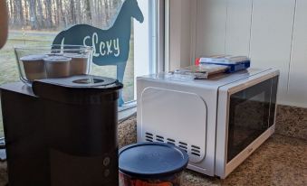 My boyfriend and I were traveling over for a wedding and needed a quick place to stay. We found this one and absolutely loved it. We were able to bring our golden retriever (Benny) and he also loved it and enjoyed looking at the horses. The owner also was super helpful and quick to respond when we needed any help. She also immediately called to inform us that my boyfriend forgot something and offered to ship it to us! 10/10, would definitely stay again and recommend to anyone needing a place to stay and feel like home.