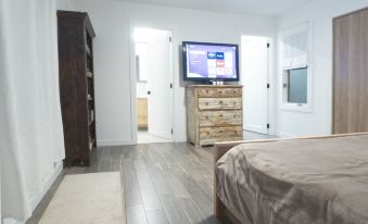 Welcome to our home where you can enjoy yourself in a Large Living Room, cook in a large modern Kitchen and watch latest movie hits and TV shows on a large projector screen, accompanied by the great sound system. For those looking to chill, there's a wood-burning fireplace and a sitting area right in front of it. All bedrooms have comfortable memory foam mattresses and each of them has a separate smart TV with Roku.