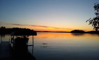 Spend quiet time by the campfire and gaze at breathtaking sunsets on a lake secluded on wooded acreage in NW Wisconsin just fifteen minutes from Hayward. Newly built cabin with 3 BR, 3 baths with a Jet tub in the master. Granite counters, ceramic tile showers, wood floors. You can cook in a large kitchen with all the necessities or cook out on the BBQ. The main living area is on upper level so there are stairs. There is also a log cabin on the property equipped with a frig and microwave and room for an additional bed. All this with 200 feet of level frontage, two docks and only 30 steps from 2500 acre Nelson lake, teeming with pan fish, Walleye, Northern Pike and Smallmouth bass. Public concrete boat launch a mile away If you are inclined to go boating. Wonderful calm waters and bays for canoeing, kayaking or water board excursions. Just 15 minutes away there is a neat small town with multiple grocery stores, bars, steakhouses with numerous fish fry establishments in the area. The Hayward area is home to many lakes, ranging in size from 30 to 17;000 acres, all within 40 minutes from the property. Hayward is also home to a world record Muske, the Bierkebinder Ski Race and the Lumberjack Championship competition. Enjoy ice fishing, cross country skiing and snowmobiling in the winter season . It's all here!About pets:Pets allowed: dogs (limit 2 total).About checkOut:Check out before 11:00 AM.About children:Children allowed: ages 0-17.Life preservers are renter responsibility..About checkIn:Check in after 1:00 PM.About smoking:Smoking is not permitted.About minBookingAge:Minimum age to rent: 25.About events:No events allowed.