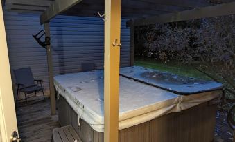 Outside of the guest house, you will also have access to some of our exterior amenities, including our hot tub, fire pit, patio, and basketball hoop. You are also welcome to take a walk or play games in the fields on the back 8 acres of our property.