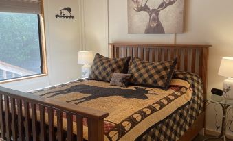 The upstairs features the, "Bear Den" with a full size bed, 3/4 bathroom with a full size W/D, and the,"Disney Den" has just a hint of Disney touches throughout with a 4 size beds (one of the twins is a trundle) The, "Disney Den" also has a private deck that looks out at the lake. The cabin offers satellite Wifi and the living room has a TV & DVD player with a variety of DVD's.