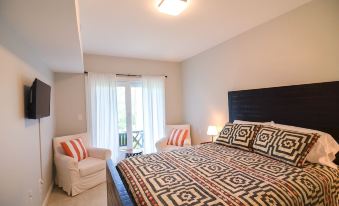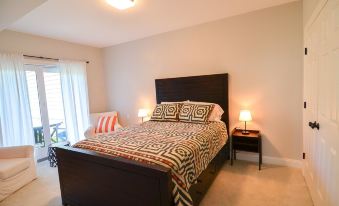 -Master bedroom w/ a Queen bed and bathroom