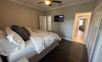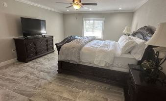 Located in Lutz, just outside of Tampa- minutes to Tampa International Airport, Raymond James Stadium, Amalie Arena, USF, Downtown Tampa, Channelside, The Riverwalk, and more. Close to everything, yet secluded and tucked away on over 2 acres for privacy and a chance to disconnect and unwind. This home is about 4,800 sqft with 6 bedrooms, 4.5 bathrooms, an office and a bonus room. The home was just completely remodeled with tons of high end finishes and details. Room for everyone with 5 king beds and one twin bed. Primary bedroom with en suite bathroom and huge walk in closet/dressing room on the first level, other 5 secondary bedrooms are upstairs. Gorgeous primary en suite bathroom with marble flooring, tile and beautiful leathered granite counters. “Wet Room” with soaking tub and walk in shower enclosed together. Brand new Stearns & Fosters and Black Beauty Rest mattresses in the upstairs 4 king bedrooms. Brand new American Signature beds upstairs with storage built in at the foot of the bed. Nightstands have a night light feature as well as built in USB and USB-C ports for easy charging. Luxury down comforters and king sized pillows. Each bedroom has a smart TV and the home has wifi and access to live tv with YouTube TV subscription access included. Ceiling fan in every bedroom. Huge, gourmet kitchen with TONS of soft close cabinetry and leathered granite counters. Farmhouse sink and prep sink. New Kitchen Aid appliances. Gas range. Coffee station with Keurig and K pods included. Countertop microwave stored away in cabinets, pull out and put on the counter if you wish to use during your stay. Toaster, Kitchen Aid stand mixer, Ninja blender, pots and pans, and other basic kitchen prep supplies ready for use. Dining room table with room for 8-10 place settings. Built in bar area with wine and beverage fridges. Leather power reclining sectional with usb ports and 65 inch tv in the family room. Additional lounge seating area with club chairs. Office located at the front of the home with a window looking over the front porch. Huge utility/pantry/wet room area and full laundry room on the first level with utility half bath. Bonus room with projector. Beautiful pond and wooded views surrounding the property. Pavered back patio with outdoor dining set. About pets:Pets allowed: dogs (limit 2 total).About checkOut:Check out before 11:00 AM.About children:Children allowed: ages 0-17.About checkIn:Check in after 3:00 PM.About smoking:Smoking is not permitted.About minBookingAge:Minimum age to rent: 20.About events:Events allowed: family gatherings, birthday parties, weddings.Maximum event attendees: 40.