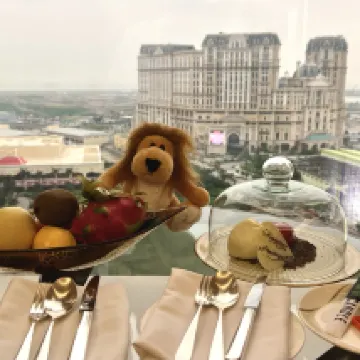 Vì chúng tôi đã thông báo trước là đi cùng trẻ em nên lễ tân đã tặng chúng tôi 2 chú sư tử nhỏ khi chúng tôi nhận phòng. Bọn trẻ rất vui khi mang theo những chú sư tử nhỏ khi ra ngoài chơi. vài ngày tới. Quầy lễ tân còn nâng cấp phòng view miễn phí. Có thể nhìn thấy đài phun nước trong phòng, rất vui. Đối với phòng đặt qua Ctrip, phiếu ăn uống trị giá 600 MOP miễn phí sẽ được cung cấp, phiếu này phải được sử dụng trước khi trả phòng vào ngày hôm sau. Bạn có thể gọi đồ ăn tại phòng 24 giờ một ngày. Tôi đã gọi món Phở Việt Nam (hương vị ở mức trung bình). và Siomai (rất ngon) dùng làm bữa ăn nhẹ vào đêm khuya và bữa sáng ngày hôm sau. Đồ uống trong Minibar đều miễn phí, nhân viên phục vụ của khách sạn rất thân thiện. Đến sòng bạc mua sữa tươi Black Lion cho bọn trẻ, niềm vui nhân đôi. Bọn trẻ nói rằng chúng sẽ ở lại đây lần sau!