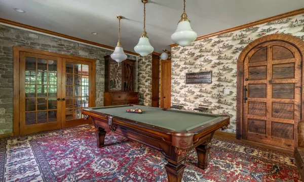 Inside the Main House, you’ll find a cozy common area with a stunning stone fireplace, a sitting room with awe-inspiring views of mountains and beautifully manicured grounds, a chef’s dream gourmet kitchen, and a recreation room with a full-size pool table next to a bar. After a day of outdoor adventure, gather around the fire pit to unwind under the stars or relax in the outdoor pavilion and catch a game.