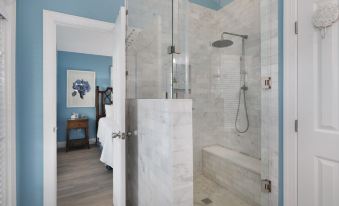 This Villa features a bump-out in the living room for added space, plus an additional en-suite bathroom connected to the guest bedroom with a queen bed—providing more comfort and convenience for your stay.