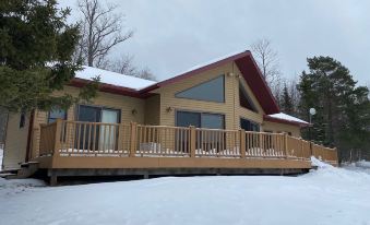 Lakehome on 200' of Lake Gogebic. Beautiful view off the 60' wide deck. New dock with boat lift for guests. Built in 2010 with open floor plan. Clean and well kept. 3 Bedrooms, 1 pull out couch, total of 4 queen beds. 2 Full Baths. Washer & Dryer. Wide circle driveway with large area for trailer parking. ATV & Snowmobile trail is at the mailbox. 50,000 acres of forest with forest road access 500' away. Central AC for summer days. Smart Roku tv, Wifi, boot dryer, grill. Half mile from boat launch, close to the Root Cellar restaurant. Snowmobile access directly to lake. Check out time 10am, check in 3pm