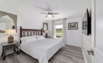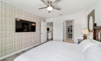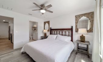 Master Bedroom: King bed, walk-in shower, and walk-in closet.
