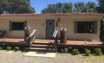 Cozy Bear Hollow is just 2 minutes from Mariposa, the "Gateway to Yosemite National Park, Two Bedrooms, a cozy living room, full kitchen, two bathrooms, and a hot tub under the trees. Grace Oak's Cozy Hollow is a lovely little home for your retreat or getaway. Nestled in mountains, just two minutes from Mariposa, 'The Gateway to Yosemite,' and decorated with the theme of the wildlife that roam nearby, you'll enjoy coming home to this retreat after a day in Yosemite, or Historic Mariposa. The home features a hot tub, deck, fire circle, TV, Books, Wifi, a fully functional kitchen, 2 bedrooms, and 2 bathrooms. Nearby Mariposa and other historic towns like Coulterville, Hornitos, Bear Valley, the Mariposa Museum, and the State Mineral Exhibit are fun to explore. In the summer the town is alive with tourists, weekend 'Music on the Green' featuring local artists in a lovely park setting, occasional open air movies on the park lawn. A fun time to visit is in the spring, when the falls in Yosemite are running. Mariposa has it's butterfly festival, and parade (usually the first weekend in May.) The poppies in the Briceburg canyon are breath-taking. Fall is also wonderful; Starting with the Labor Day Parade and old fashioned Mariposa County Fair. I love the colors that come with the changing of the leaves, and the crisp air. Winter is great, especially if we have a few snows! The Mariposa Christmas parade is usually the first weekend in December, as is the annual Christmas Craft fair. Yosemite offers some fun activities at the Ahwanee, as well as ice skating, and skiing in the village, or it's always fun to drive there to see the Lord's majestic Creation. It's also fun to just relax at Grace Oak's Cozy Hollow... away from the hustle and on the porch and watch for deer, (which I see here everyday) wild turkeys, quail,& rabbits, while you enjoy a good book...