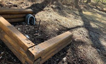 In the front of the cabin a fire pit with plenty of seating is ready for s'mores and conversation with friends and family. Additionally, an outdoor swing for 2 is great fun for young and old alike. And don't forget about the horseshoe game!