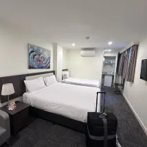 chúng tôi đặt phòng giường đôi và được nâng cấp lên giường cỡ lớn và giường đơn. Phòng có không gian rộng rãi trông như mới được cải tạo gần đây với đầy đủ tiện nghi cơ bản - ấm đun nước, tủ lạnh, tivi. Nhân viên thân thiện và hữu ích. Vị trí gần ga Souther Cross với nhiều cửa hàng tạp hóa gần đó.