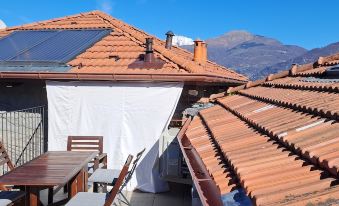 The house for rent is 400 years old (completely and comfortably renovated in 2002, roof-top terrace built in 2023) and is situated in the historic Castello above Menaggio, on Lake Como just across Bellagio and Varenna. It is a bridge over a pebble stone road, a short five minute walk down to the center of Menaggio. The house has two floors and a private parking below. On the first floor is the kitchen, dining area and the living room (with an additional sofa bed for 2) with a walkout balcony with lake view and fireplace. The second floor has a large roof-top terrace with view on the mountains, a master bedroom, a second bedroom (with a single bed that turns into a double) and a bathroom with bath/shower, wc and bidet. Traffic is restricted so the house is very quiet with a great Lake View. It is "suspended" above the road, and it has a balcony and a large terrace. Under the bridge you can access the terraced garden, where an area is reserved to guests as a sundeck or to work or read, or where you can cook, BBQ and dine. The garden is occasionally shared wth other guests, but the roof top terrace and balcony are in exclusive use. House is ideal for who travels by public transportation. Menaggio is very well served by buses and boats and a main train line is just across the Lake, in Varenna, 15 minutes away by ferry.