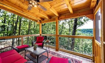 The back deck area is completely covered and has an outdoor dining area with seating for 6. The hot tub overlooks the valley and offers a wonderful view of the valley. The screened-in porch is the perfect place to relax and read or enjoy your morning coffee. Bring your favorite steak to grill on the outdoor charcoal grill and enjoy dinner al fresco on the lower deck while watching an exciting cornhole match.